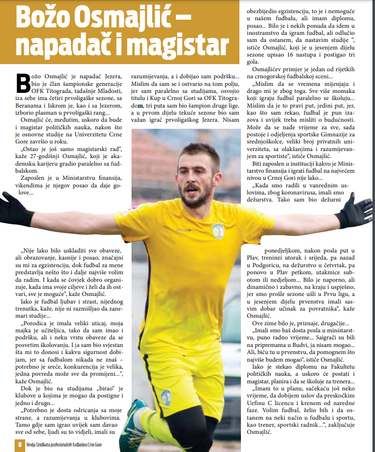 apr162021Uncategorized @bsCategory: Uncategorized @bsApril 16, 2021Leave a commentShare This ArticleShare with FacebookShare with TwitterShare with Google+Share with PinterestShare with LinkedIn Author: spfcg Post navigationPreviousPrevious post:Ivan Novović – Crnogorskom fudbalu je potrebno još više obrazovanih i vrijednih ljudiNextNext post:Pogledajte kako izgleda muški i ženski World 11 po izboru crnogorskih fudbalerki i fudbaleraRelated postsIN MEMORIAM: Nemanja UlićevićFebruar 2, 2026SREĆNI NOVOGODIŠNJI I BOŽIĆNI PRAZNICIDecembar 31, 2025Sindikat fudbalera o suspendovanim igračima Lovćena: Nedopustivo je da se bez dokaza vrši takvo targetiranjeDecembar 31, 2025Fudbalski savez Crne Gore proglasio najboljeDecembar 31, 2025Šesta redovna Skupština Sindikata profesionalnih fudbalera Crne Gore (SPFCG) održana je u PodgoriciOktobar 29, 2025projekat ,,Druga karijera“Septembar 19, 2025